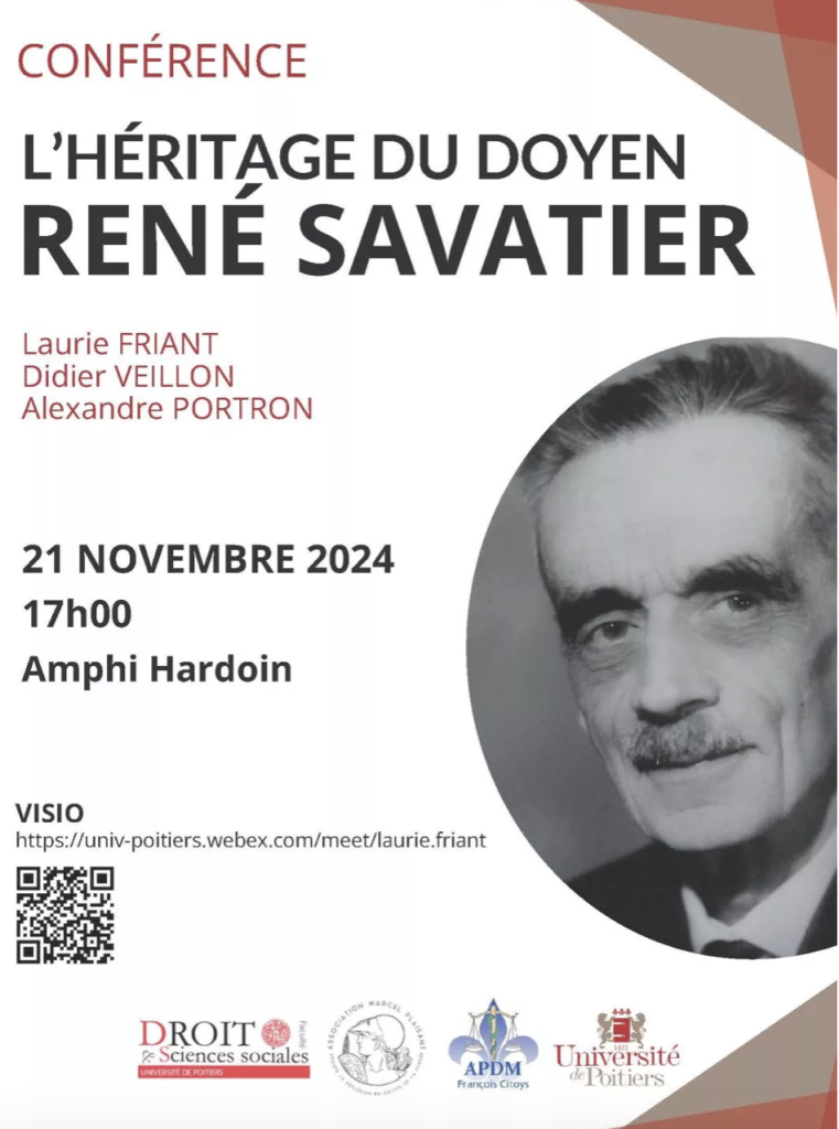Conférence - L'héritage du doyen René Savatier le 21 novembre 2024 à 17h00, Amphi Hardoin